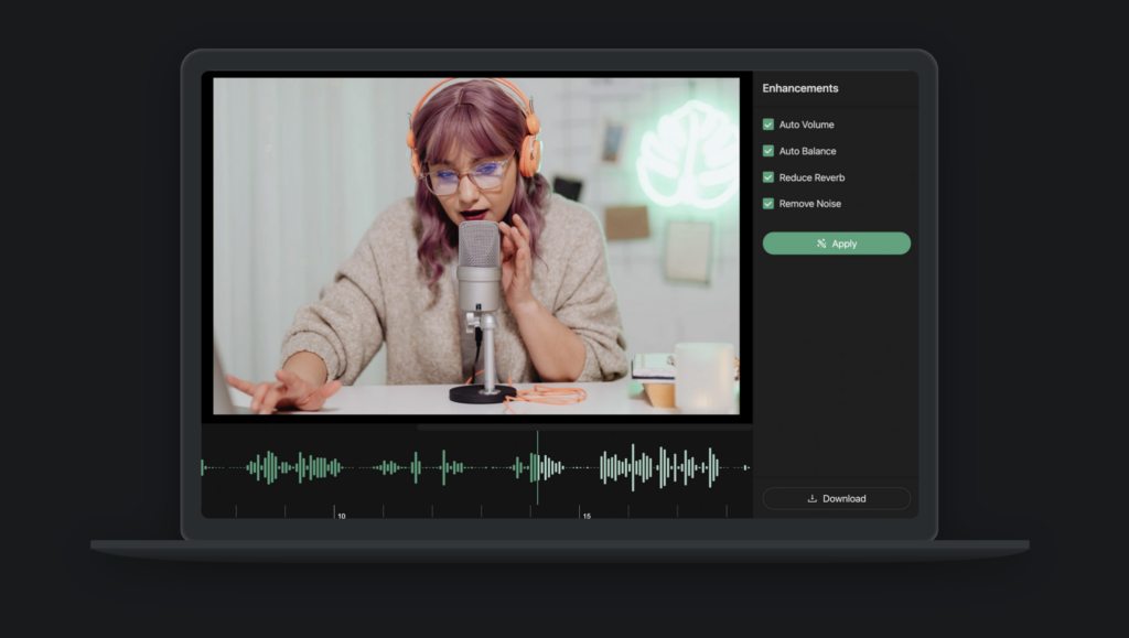 هل ترغب في تجربة صوت خالٍ من الضوضاء؟ مع Audo AI يمكنك ذلك! تستخدم الأداة أدوات مبتكرة لمعالجة الصوت جنبًا إلى جنب مع الذكاء الاصطناعي للقضاء على ضوضاء الخلفية، مما يضمن تسجيلات واضحة تمامًا وكلامًا مفهومًا، بغض النظر عن البيئة المحيطة.