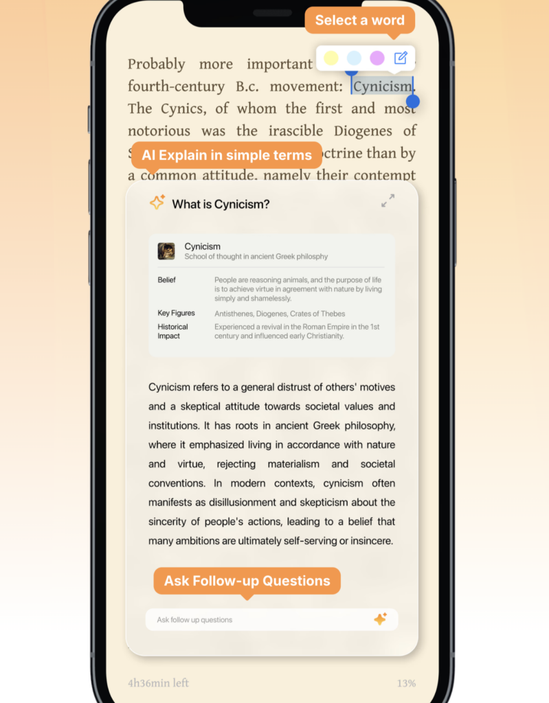 يستهدف BookRead أي شخص يرغب في القراءة بذكاء أكبر، وبسهولة أكبر، وبطريقة جذابة. سواء كان طالبًا يرغب في استيعاب المواد المعقدة، أو محترفًا يرغب في استخلاص الرؤى الرئيسية بسرعة، أو قارئًا نهمًا يتعمق في الكتب، فإن BookRead موجود لدعمهم. إنه مثالي للمتعلمين الذين يرغبون في شروحات مدعومة بالذكاء الاصطناعي، والقراء المشغولين الذين يحتاجون إلى ملخصات سلسة وتتبع للتقدم، والباحثين عن المعرفة الذين يحبون الكشف عن التفاصيل التاريخية والسياقية دون مقاطعة تدفق القراءة. إذا كنت ترغب في القراءة بكفاءة أكبر، والفهم بشكل أفضل، والاحتفاظ بالمزيد، فإن BookRead هو لك.