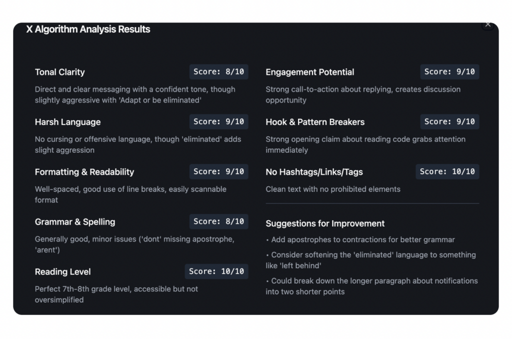 تُعد Creator Buddy الحل الأمثل لأي شخص يرغب في إحداث فرق كبير في الارتقاء بحسابه على X إلى مستوى أعلى. إنها أداة مصممة لتنمية التواجد عبر الإنترنت والتواصل مع الجمهور، سواء كان الفرد صانع محتوى، أو مسوقاً، أو رائد أعمال، أو صاحب عمل صغير. بفضل ميزات مثل تحليل الأداء، وفهم الخوارزميات، وإعادة استخدام المحتوى بسهولة، تجعل Creator Buddy نشر محتوى جذاب ومذهل بصرياً أمراً بسيطاً حقاً. ستكون مثالية لبناء علامتك التجارية، وزيادة الرؤية، والتفوق على المنافسة – كل ذلك بطريقة توفر الوقت وتنشئ محتوى يتفاعل معه الناس بالفعل.