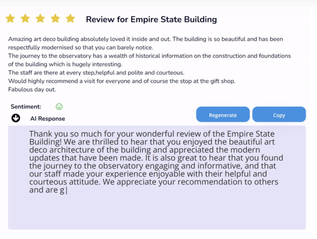 ما عليك سوى نسخ المراجعة إلى Replygenius، وفي غضون ثوانٍ، يمكنك إنشاء ردود مخصصة بسهولة.