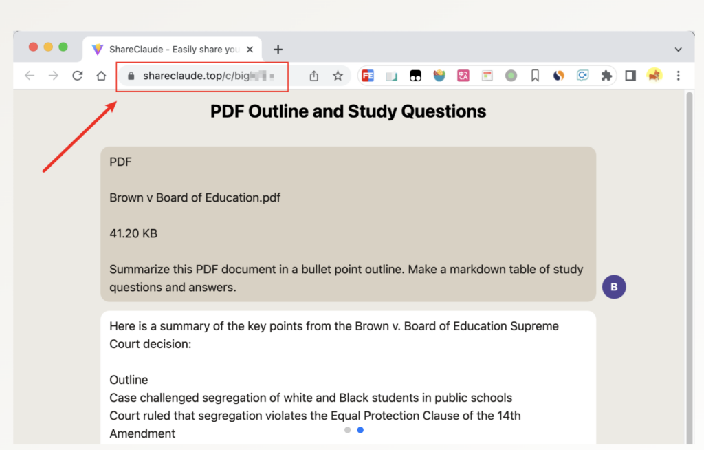 يكمن في صميم إضافة كروم هذه قدرتها الفريدة على تعزيز المحادثات الشخصية مع كلود 2. تفعل ذلك من خلال دمج زر "مشاركة" في شريط إجراءات صندوق الدردشة، مما يمنحك القدرة على إنشاء رابط دائم لمشاركة محادثاتك بسهولة.