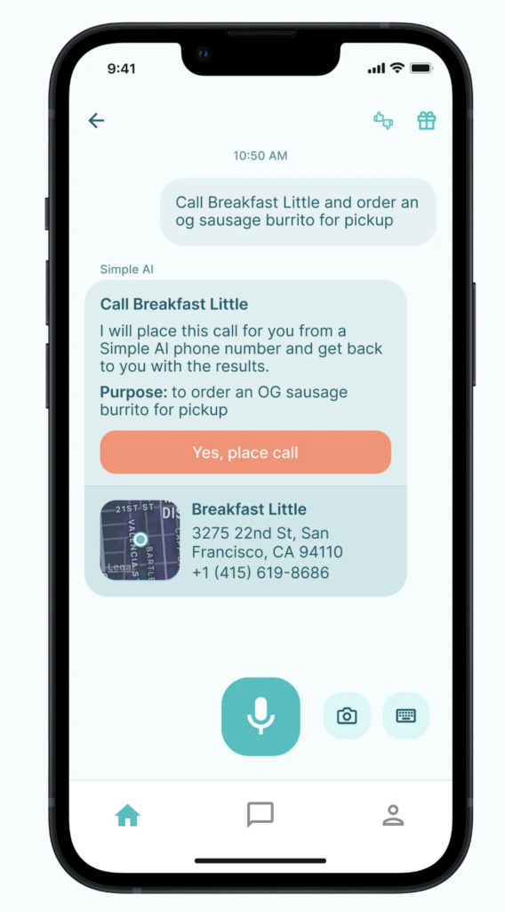 Simple AI هو مساعد هاتفي افتراضي يعمل بالذكاء الاصطناعي يتولى رعاية مكالماتك. سواء كان الأمر يتعلق بجدولة مطعم، تحديد موعد، أو التعامل مع دعم العملاء، فإن Simple AI يقوم بكل شيء تقريبًا نيابة عنك. بعد كل مكالمة، يقدم Simple AI نصًا واضحًا، حتى تتمكن من مراجعة ما حدث بالضبط. هل تحتاج إلى التحقق من التوفر في أماكن متعددة؟ لا توجد مشكلة، يمكن لـ Simple AI إجراء العديد من المكالمات في وقت واحد ويوفر عليك الوقت والمتاعب.