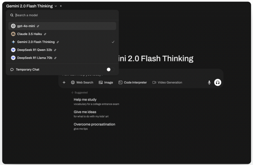 TypeThinkAI هو لمن يبحث عن إنجاز المزيد باستخدام الذكاء الاصطناعي دون الحاجة إلى التنقل المستمر بين الأدوات المختلفة. سواء كنت مبدعًا يستلهم المفاهيم، أو باحثًا يستكشف مواضيع جديدة، أو مبرمجًا يقوم بتصحيح الأخطاء البرمجية، أو مستخدمًا تجاريًا يبسط سير العمل، فإن TypeThinkAI يدمج الدردشة بالذكاء الاصطناعي، وإنشاء الصور والفيديو، والبحث عبر الويب في الوقت الفعلي، وتفسير الأكواد، كل ذلك في أداة واحدة سهلة الاستخدام. إذا سئمت من التبديل بين التطبيقات وترغب في طريقة أذكى وأسرع للإبداع والتعلم وحل المشكلات، فإن TypeThinkAI صمم خصيصًا لك.